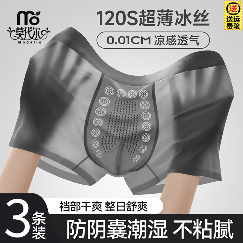 莫代尔冰丝男士内裤男生夏季薄款防阴囊抗菌潮湿透气大码男款短裤衩 黑色+深灰+银灰 3条 2XL 【推荐140-160斤】
