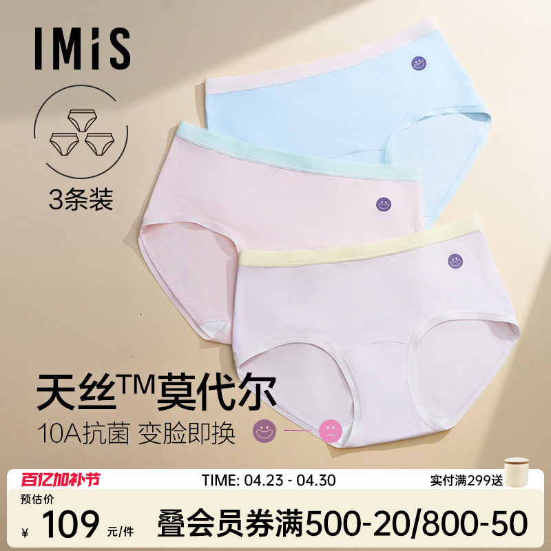 爱美丽3条装备忘裤10A抗菌天丝莫代尔内裤女桑蚕丝底裆中腰三角裤