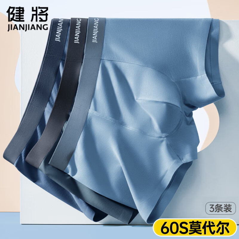 健将男士内裤男莫代尔平角裤7A级抑菌冰丝无痕透气四角裤衩礼盒装 (梦幻蓝+星宇蓝+神秘灰) 3条 2XL (腰2.5-2.7尺 重130-150斤)