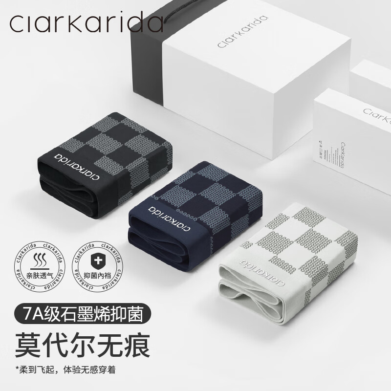 Clarkarida复古棋盘格纹印花内裤男士莫代尔7A级抗菌高端高级透气送礼物礼盒 棋盘格子3条装 2XL (140-160斤)
