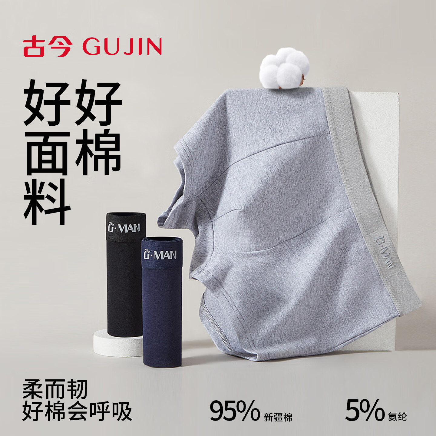 古今内裤男士高端纯棉平角短裤衩头青少年防阴囊潮湿2026新款 黑色+2条浅灰+藏青 4条 3XL 体重80-90kg