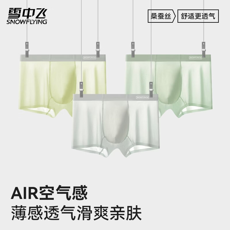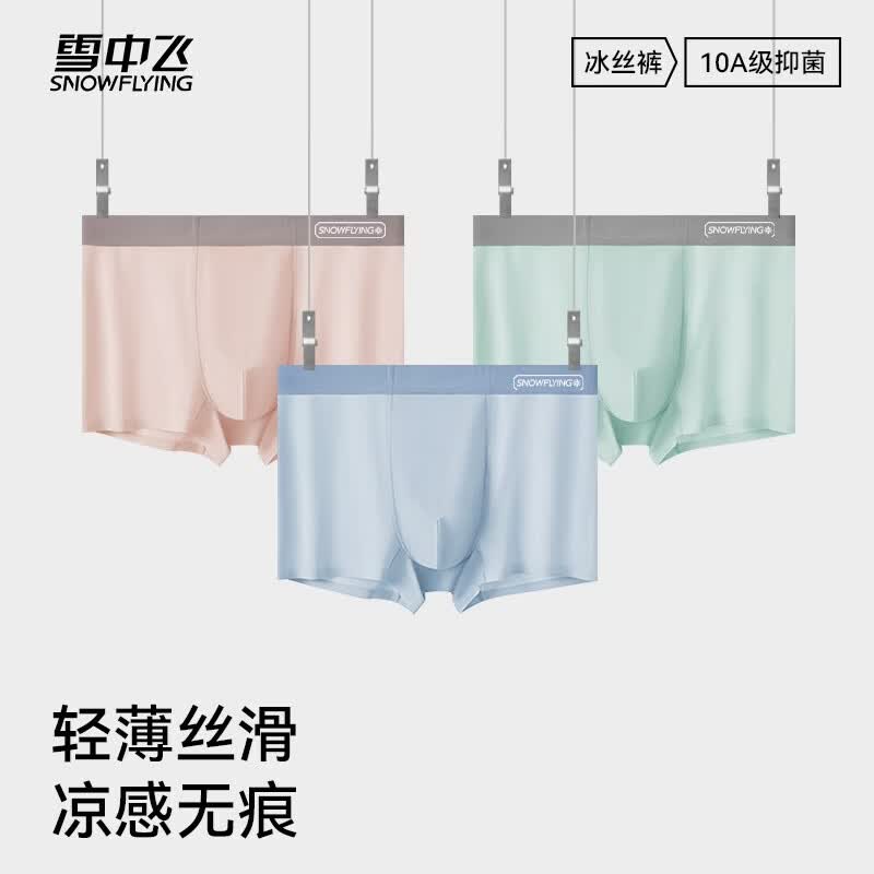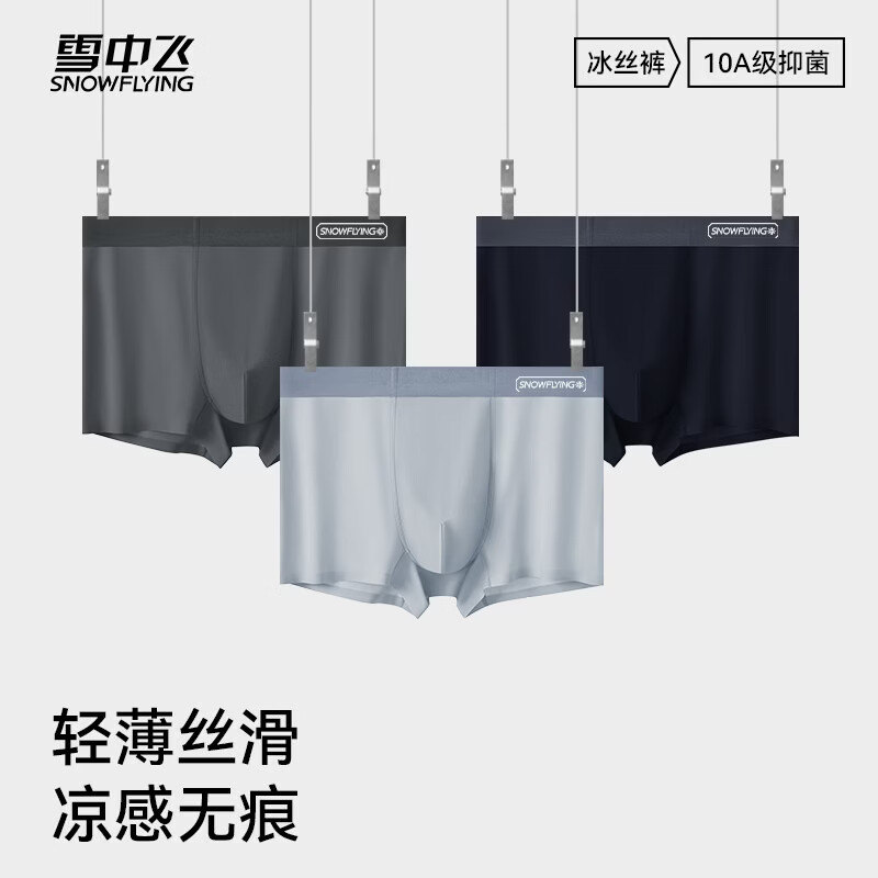 雪中飞男款冰丝内裤男士平角短裤头四角裤男生2026新款加肥加大码 XZFRQ-月光白+冰透蓝+浅灰 【10A抗菌桑蚕丝内裆】 3条 2XL 【建议140-160斤】