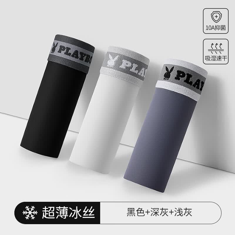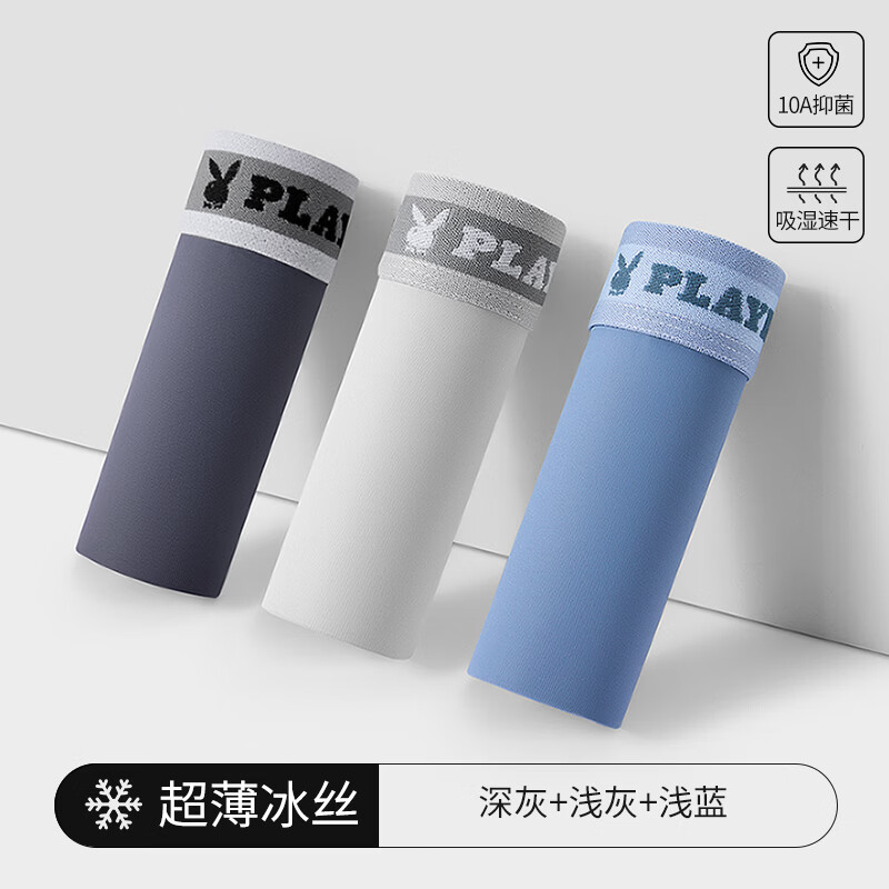 花花公子(PLAYBOY)男士内裤男冰丝10A抗菌短裤头无痕凉感平角裤大码男生四角裤衩夏 【真冰丝·10A抗菌】深灰/浅灰/浅蓝 3条 2XL (建议体重130-150斤)
