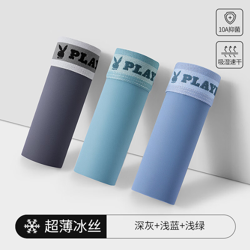 花花公子(PLAYBOY)男士内裤男冰丝10A抗菌短裤头无痕凉感平角裤大码男生四角裤衩夏 【真冰丝·10A抗菌】深灰/浅蓝/浅绿 3条 2XL (建议体重130-150斤)