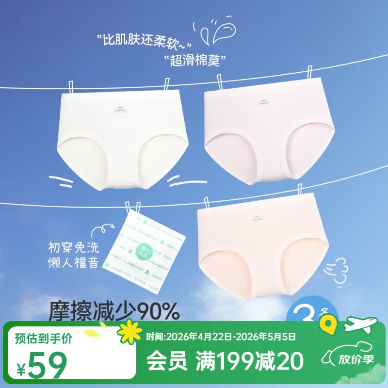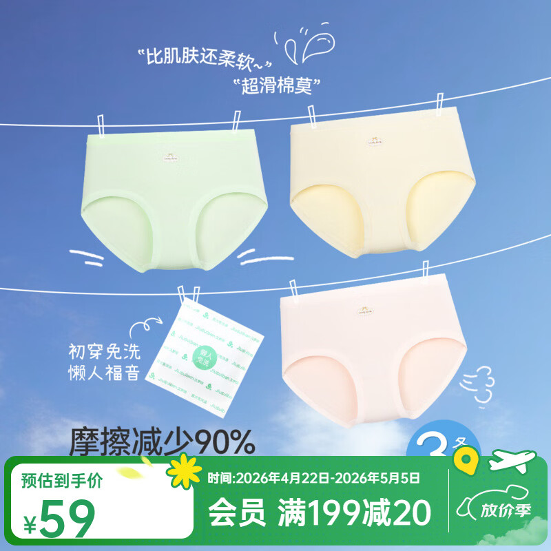 久岁伴少女士10A抑菌【首穿免洗】三角棉内裤3条莫代尔A类桑蚕丝裆学生 【浅粉+浅绿+奶黄】 3条 2XL (175) 体重:150-170