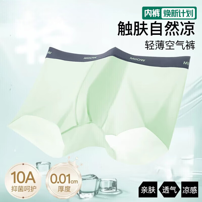 猫人冰丝无痕内裤男士夏季超薄款平角裤抗菌透气凉感男生四角短裤衩 薄荷绿+星月蓝+浅灰 3条 2XL 【建议120-140斤】