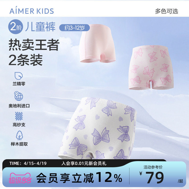 爱慕儿童分阶裤二阶儿童裤男女童内裤平角中腰抗菌秋冬学生莫代尔