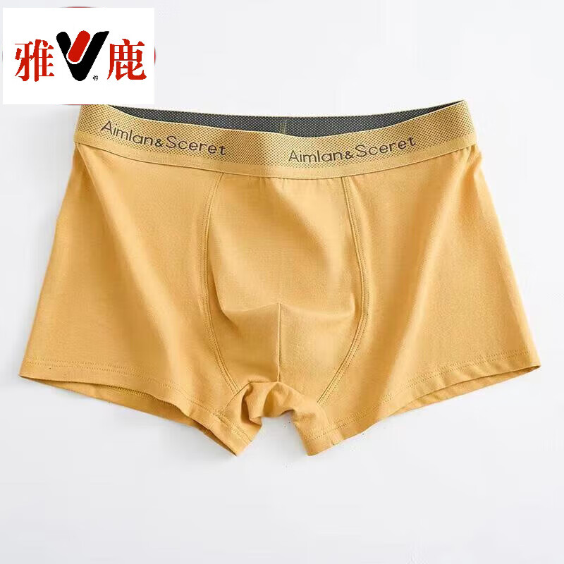 雅鹿肤感纯棉加大码260斤可穿男士内裤男石墨烯抑菌裆无痕平角男内裤 黄色 2XL 130150斤