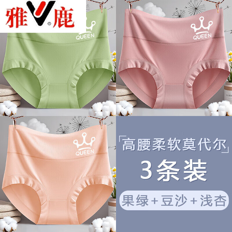 雅鹿莫代尔高腰女士内裤收腹提臀棉档中年妈妈大码亲肤三角短裤 【莫代尔940】装B组合-棉底档/高腰舒适 3条 2XL 建议135-155斤