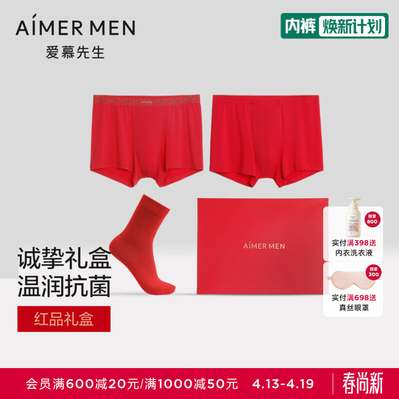 爱慕先生【红礼盒】本命年送礼牛奶系含氨基酸蛋白3A抗菌红内裤2条红袜1双 大红77G 2条 L 170