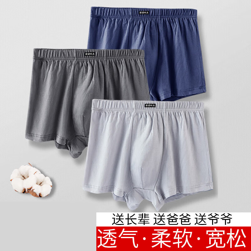 宜而爽男士内裤男10A抑菌无痕裸感冰丝高弹轻薄透气中腰舒适平角短裤衩 宝蓝+浅灰+天蓝 3条 2XL 建议【140-160斤】