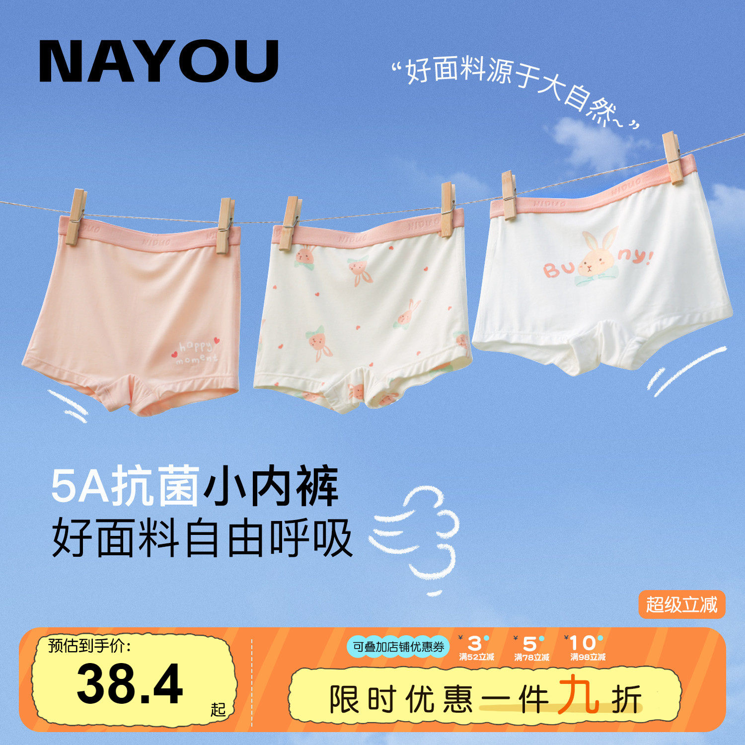 纳柚儿童莫代尔内裤儿童平角内裤女童夏季四角短裤中大童薄款内裤