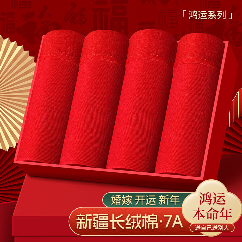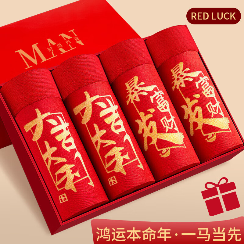 本命年红色男士内裤柔软男款四角裤头大码底裤衩印花新款 2条【转运+有钱】 3XL 140-160斤