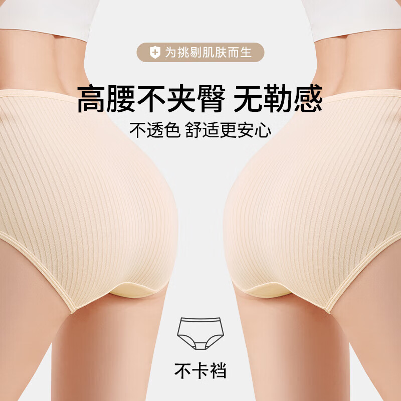 草本初色妇炎洁牌内裤女2025新抗菌中高腰加长纯棉底裆无痕三角裤