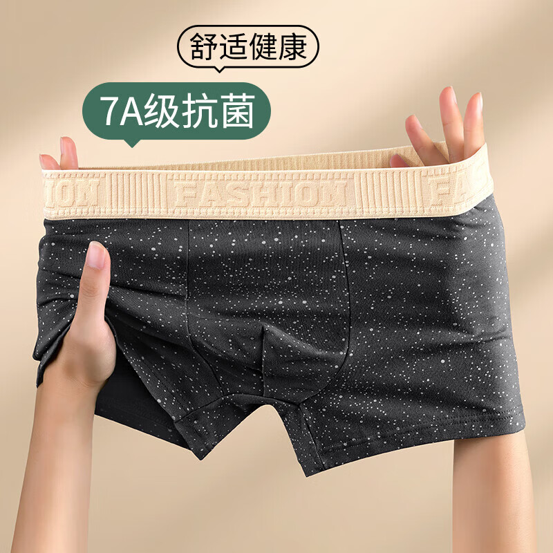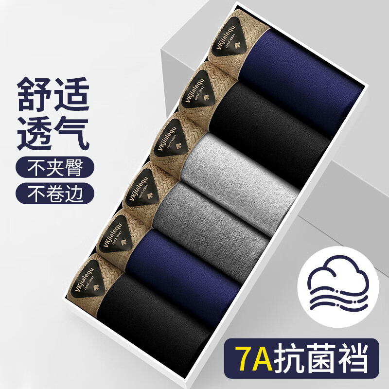 猫人无痕男士内裤纯棉抗菌四角短裤男生透气平角裤头男款底裤衩 黑色、宝蓝、浅灰 3条 2XL 【建议体重130-150斤】