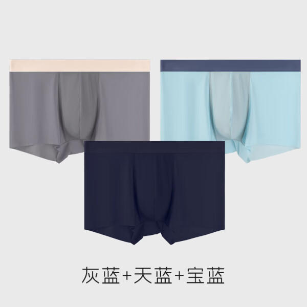 俞兆林男士内裤男夏季冰丝平角裤大码宽松四角底裤衩男款短裤头 NSMKU-灰蓝+天蓝+宝蓝 3条 2XL (建议140-160斤)