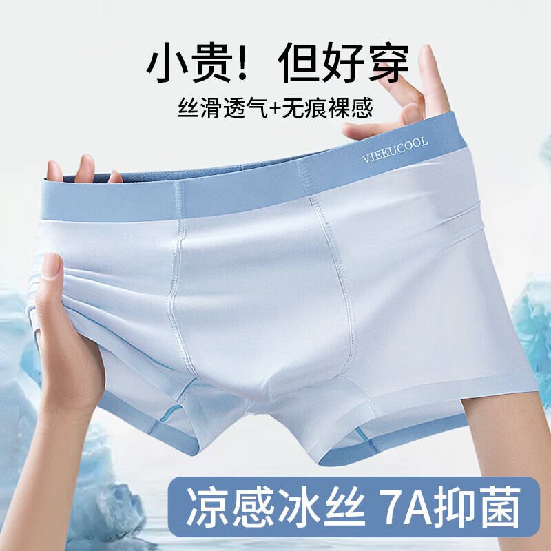 猫人莫尔代无痕内裤男冰丝抗菌档四角内裤大码宽松青少年平角短裤头 【莫代尔】钴蓝_浅紫_咖啡 3条 2XL 【建议130-140斤】