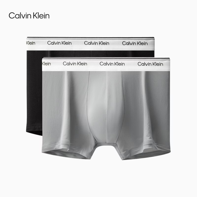 Calvin Klein内衣【吸湿速干】26春夏新男两条装ck轻薄低腰防夹臀平角内裤男 G3R-太空黑/椰青灰 2条 L