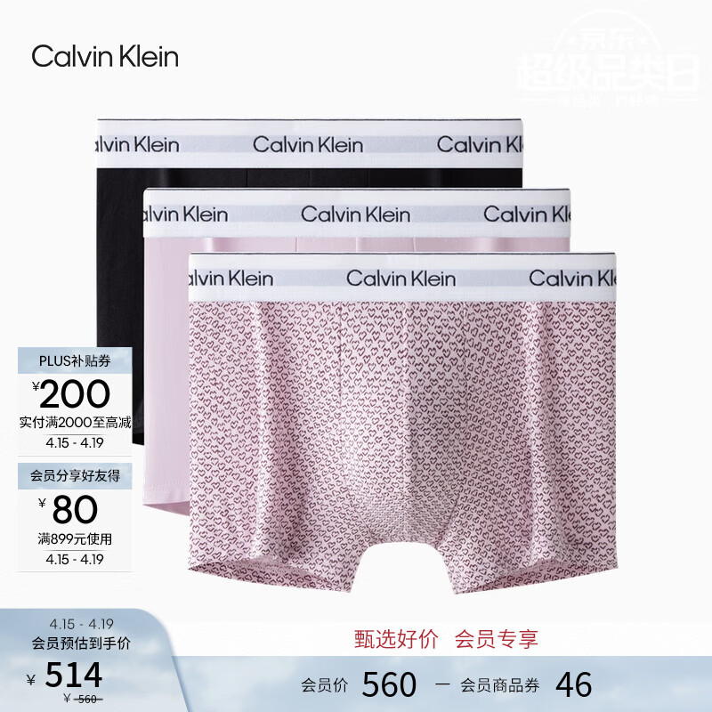 Calvin Klein【明星同款摩登引力带】内衣男三条ck棉质低腰防夹臀平角内裤男 2WX-太空黑/柔粉/心形粉 3条 M