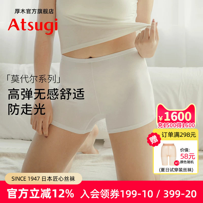 ATSUGI/厚木打底裤防走光安全裤 女中腰薄款二合一莫代尔平角内裤