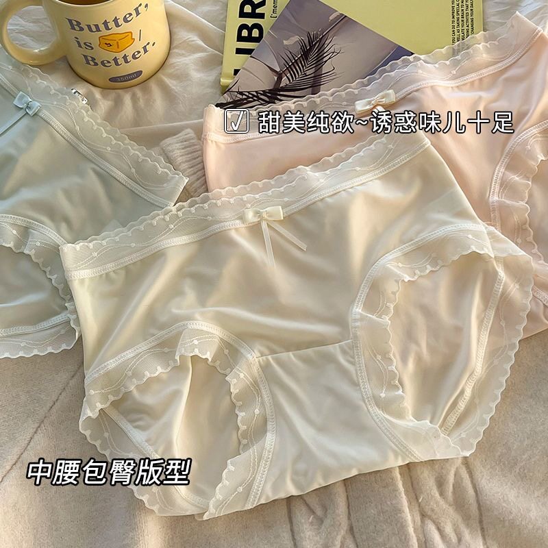 甜美风纯欲蕾丝边内裤女生纯棉裆抑菌2026新款缎面性感女士三角裤