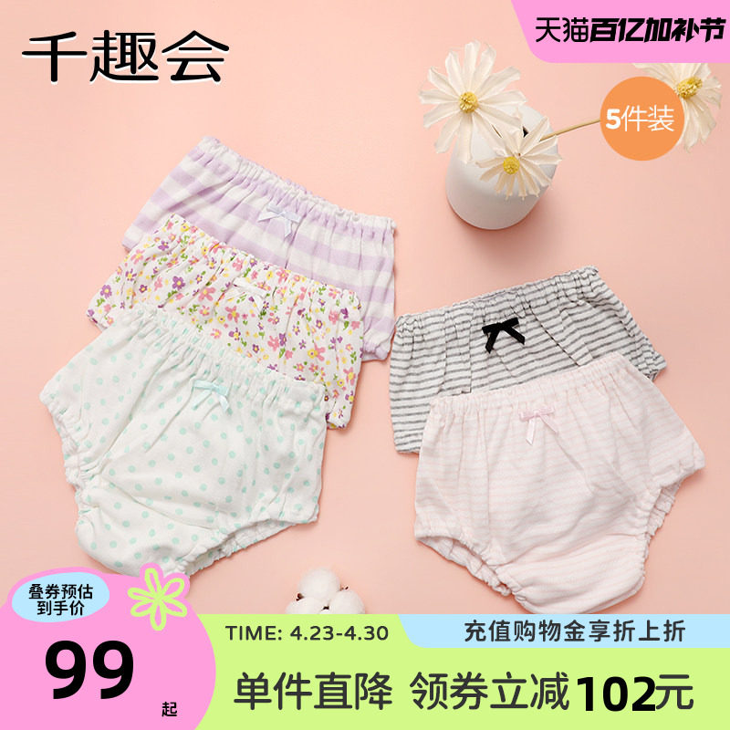 千趣会童装女童短裤不夹PP柔软透气幼儿园宝宝花苞裤内裤5条装