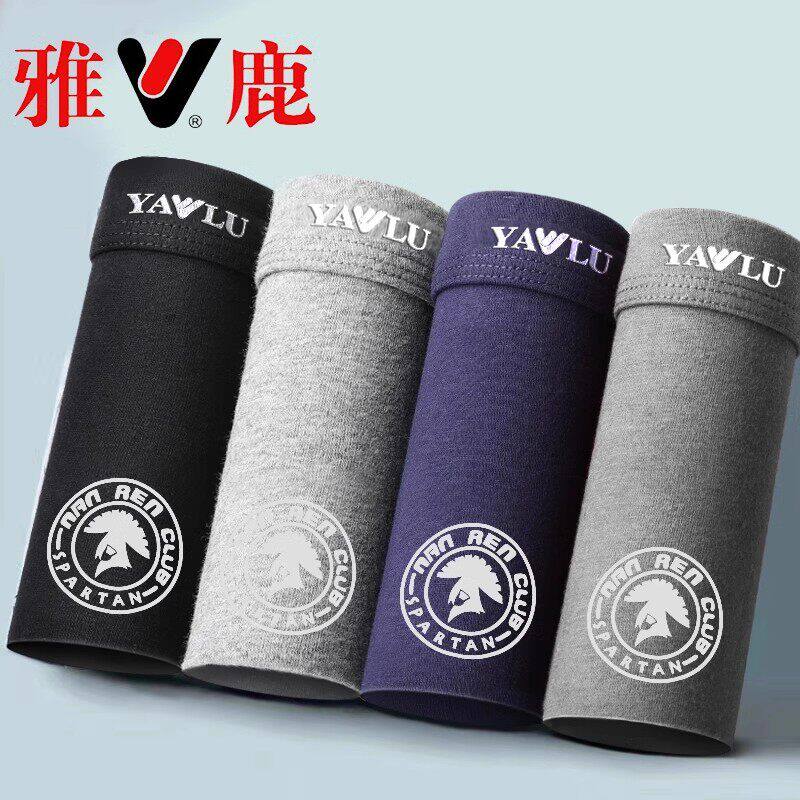 雅鹿纯棉短裤4条装男士夏季吸汗透气内裤7A抗菌全棉裆平角裤宽松
