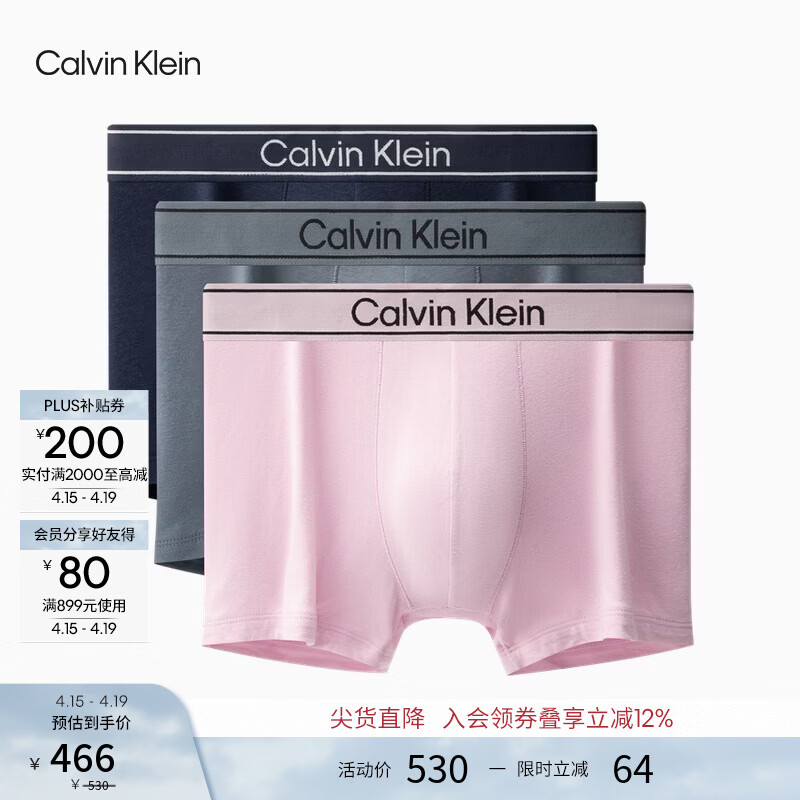 Calvin Klein内衣男士三条装ck提花腰边混纺顺滑微弹防夹臀四角裤平角内裤男 2TC-深藏青/浅粉/中灰 3条 L