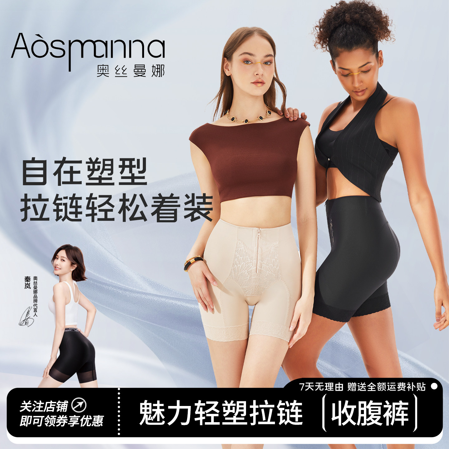 奥丝曼娜中腰拉链收腹束腰翘臀强力收小肚子塑形安全内裤女提臀裤