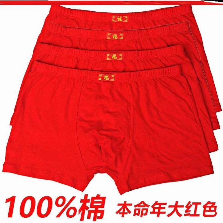 100%男士内裤福字全棉大红色平角裤中年爸爸加大码裤头提臀本命年