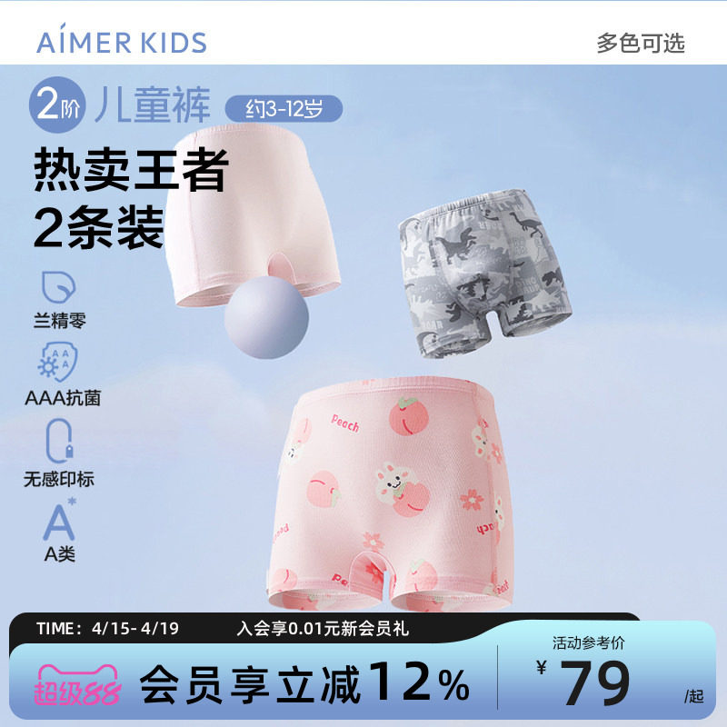 爱慕儿童A类莫代尔男女孩童内裤3A抗菌中腰平角裤2条装新