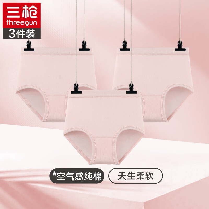 三枪(THREEGUN)女士内裤纯棉新疆棉收腹提臀高腰罗纹三角裤宽松大码内裤 3条装 粉红+粉红+粉红 3条 2XL (175) 【推荐140-160斤】