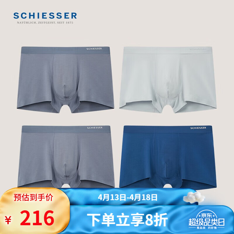 舒雅(Schiesser)男士内裤男80S莫代尔3A抑菌舒适平角内裤【4条装】19928T 深灰+浅灰+深灰+宝蓝 4条 2XL