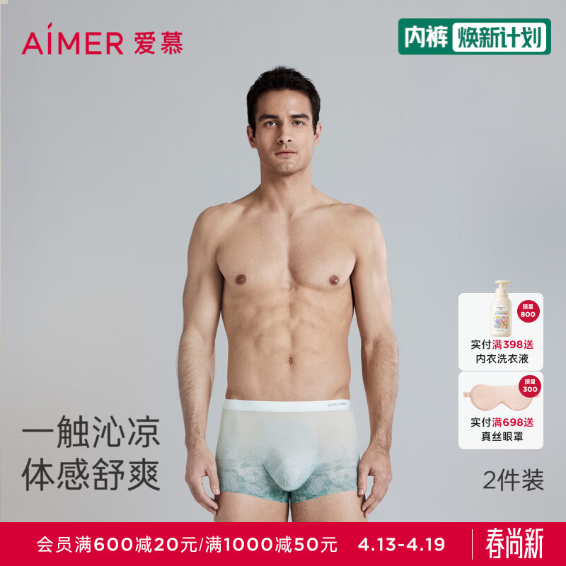 宜而爽【3A抑菌】凉感冰丝男士内裤轻薄透气内衣平角裤男2条装