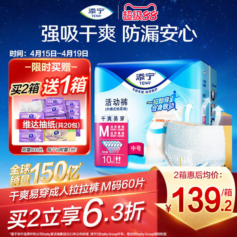 TENA/添宁成人拉拉裤活动裤男女老人用尿不湿内裤型纸尿裤M码60片