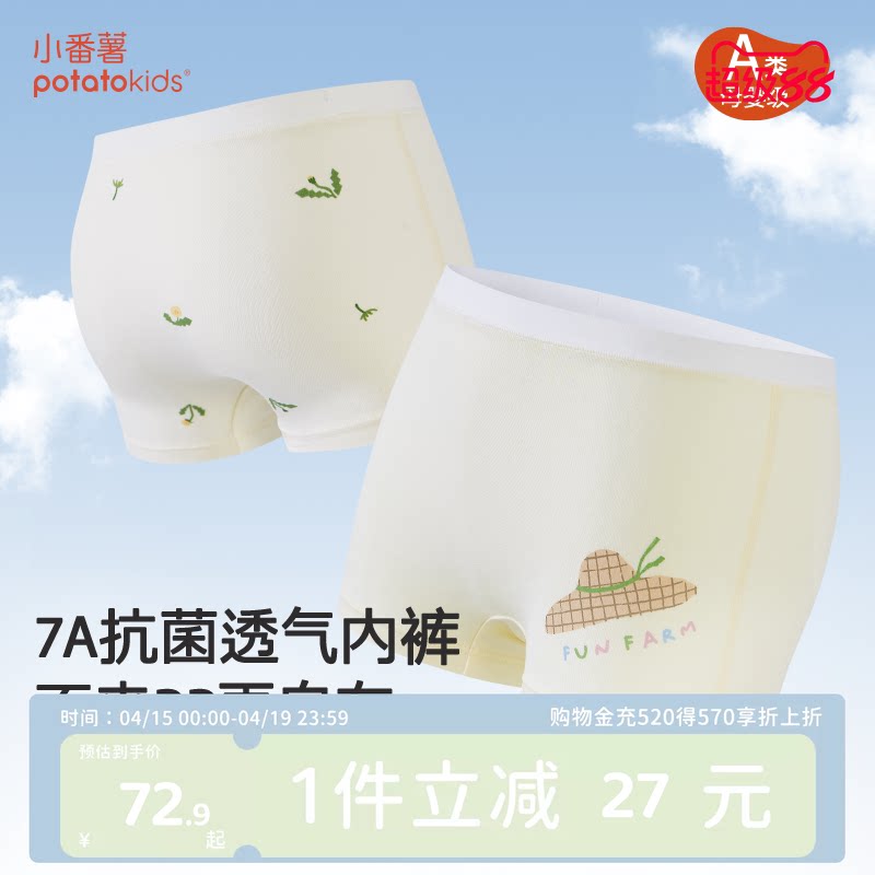 小番薯potatokids儿童内裤宝宝四角短裤抗菌女孩男童莫代尔平角裤