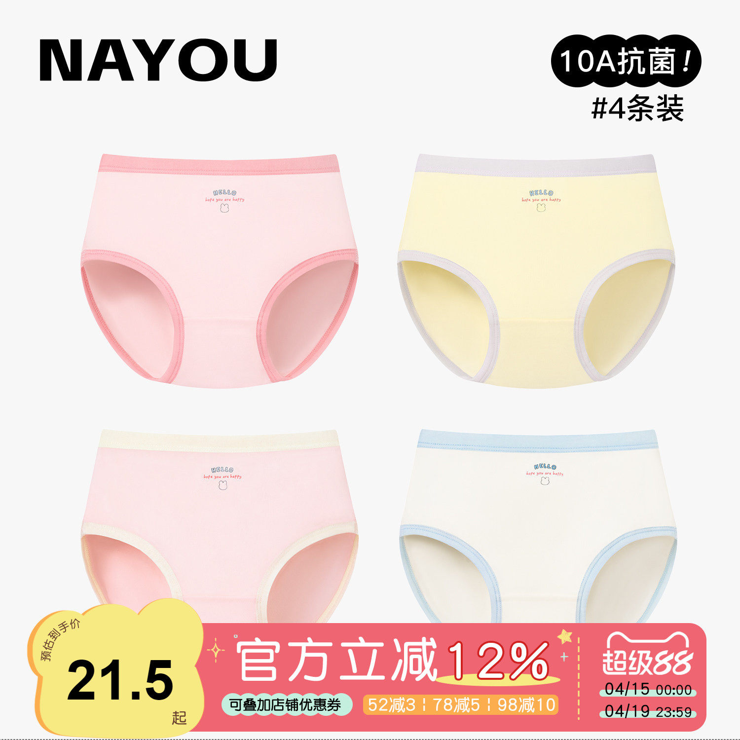 纳柚儿童内裤女童纯棉a类中大童内裤不夹PP抗菌女孩三角短裤