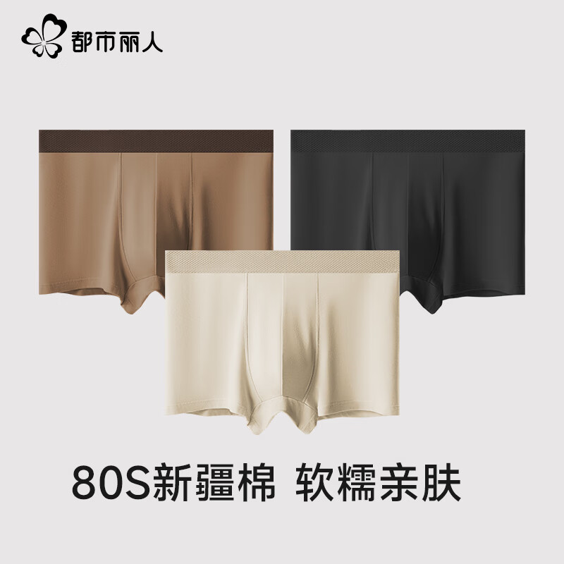 都市丽人男士内裤棉四角裤男生2025新款抗菌莫代尔平角短裤头男款 浅米色+深棕色+黑色 3条 2XL 【建议体重130-150斤】