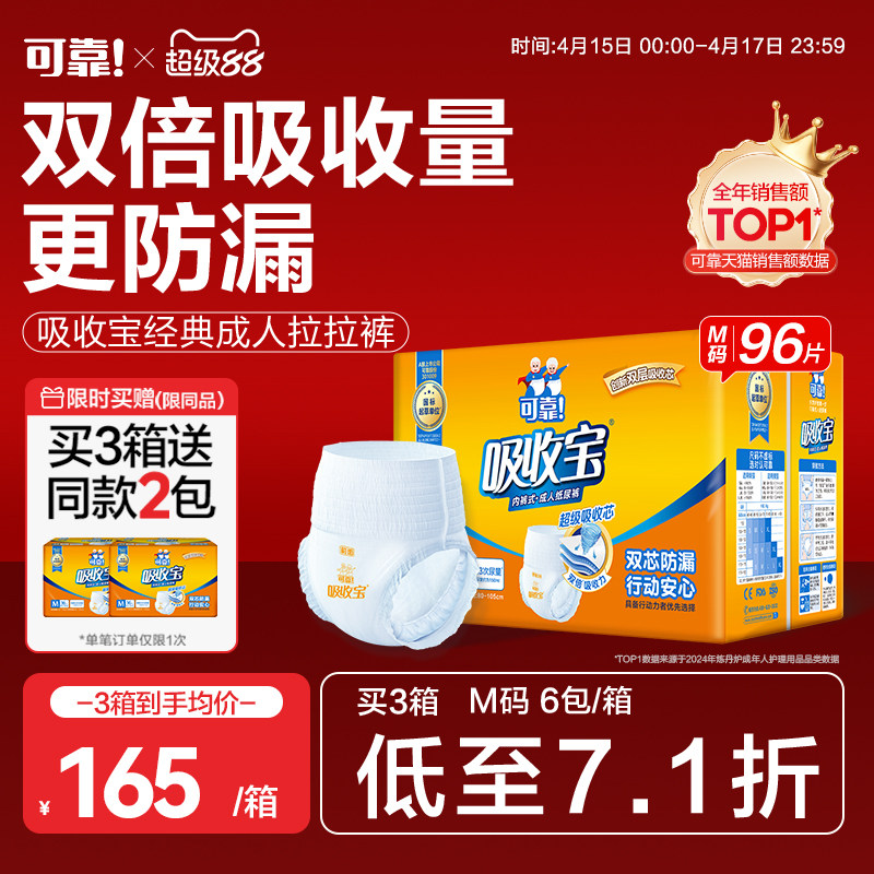 可靠吸收宝成人拉拉裤M码老年人专用尿不湿内裤型纸尿裤男女通用