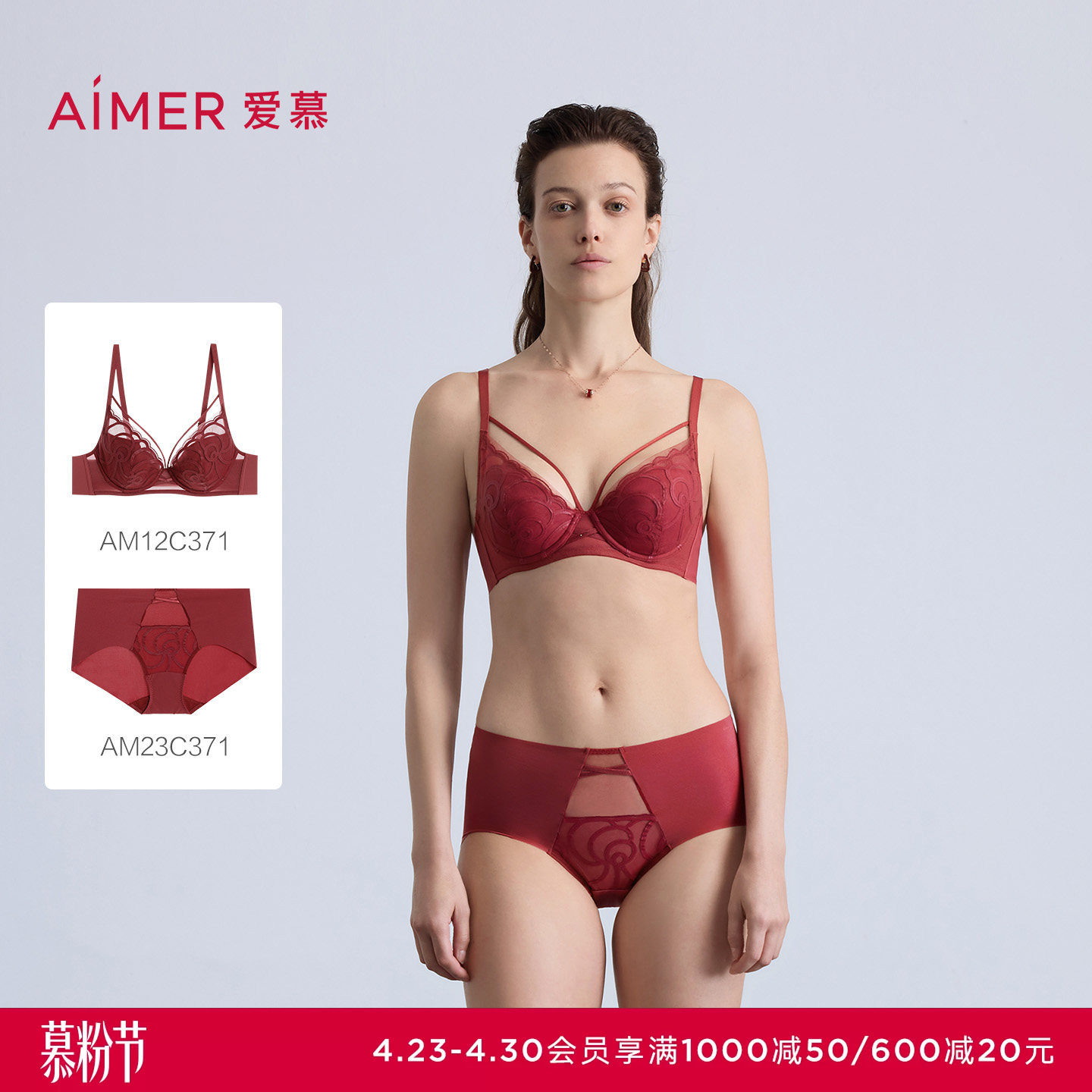 爱慕瑰丽内衣女无纺布大胸显小大罩杯本命年红薄杯文胸内裤套装