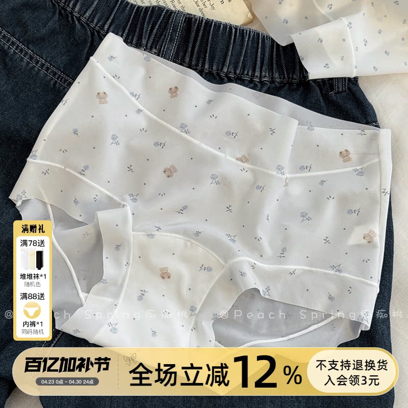 『云柔冰荷』无痕冰丝内裤女2026新款中腰蜜桃臀性感女士三角裤头