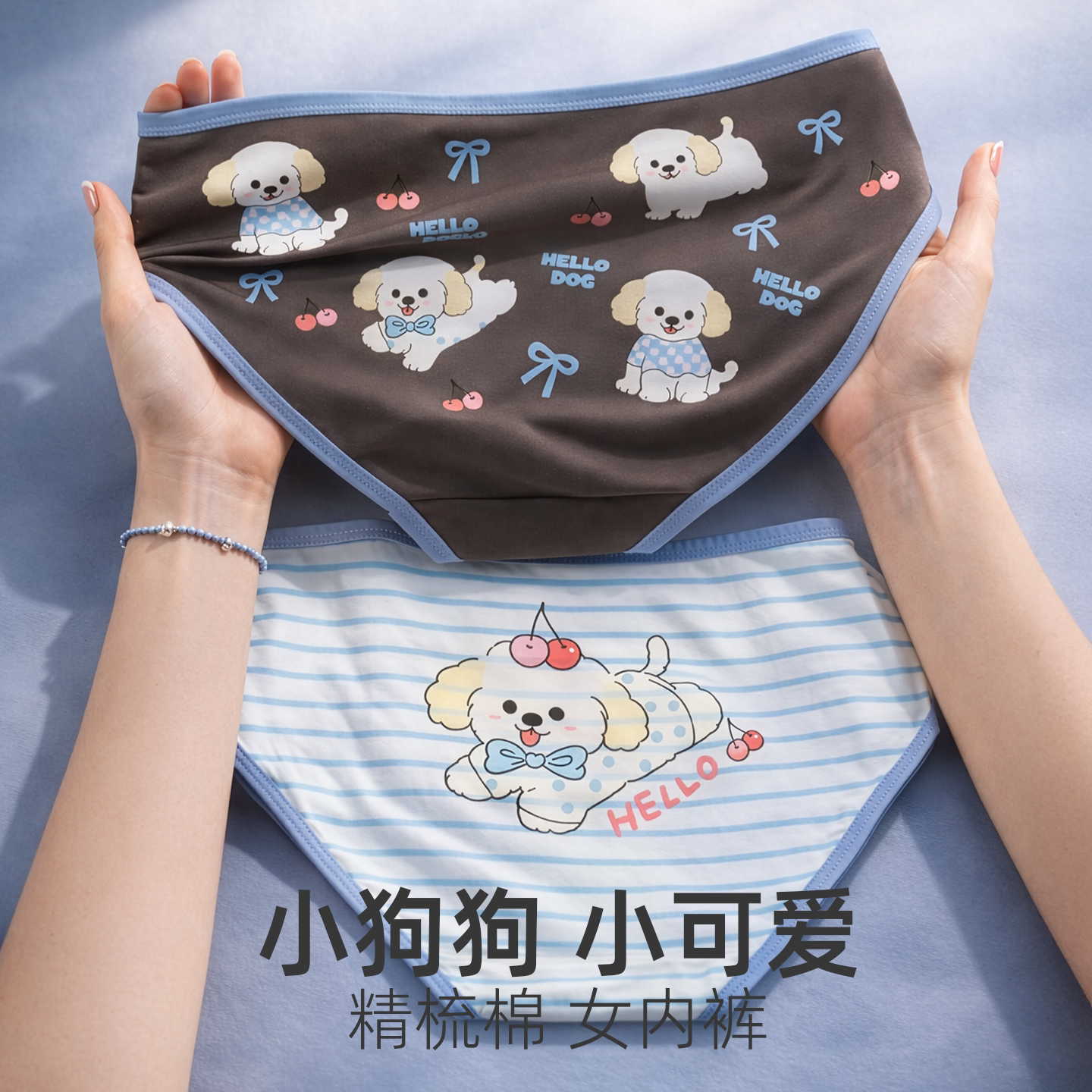 纯棉女中腰亲肤透气不紧勒三角裤提臀修身抗菌防卷边小狗印花内裤