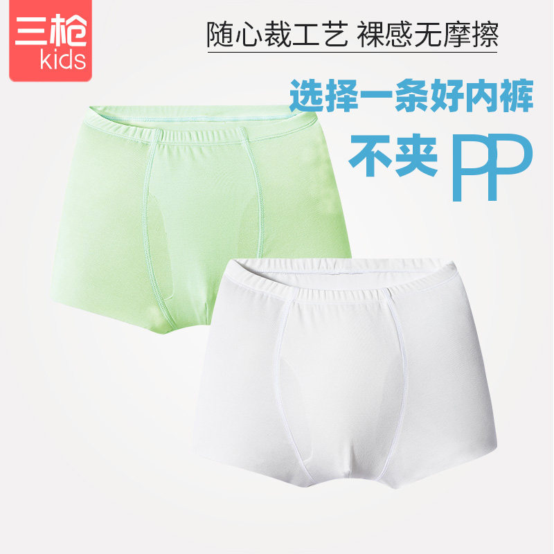 三枪儿童无痕女三角莫代尔高端垂顺无骨无锁边男童四角裤纯色内裤