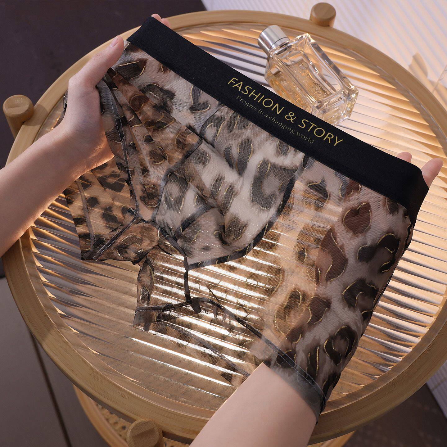 性感豹纹男士内裤网纱冰丝平角裤半透明四角裤男生薄款夏季短裤潮