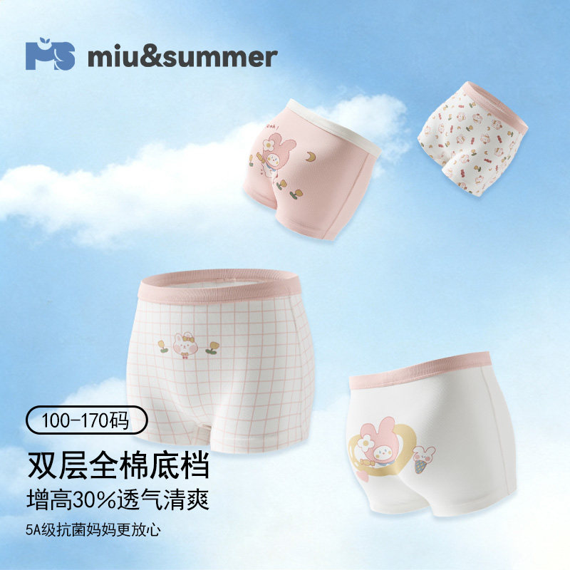 米柚夏天儿童内裤女童 中大童小女孩纯棉四角短裤全棉a类不夹屁屁