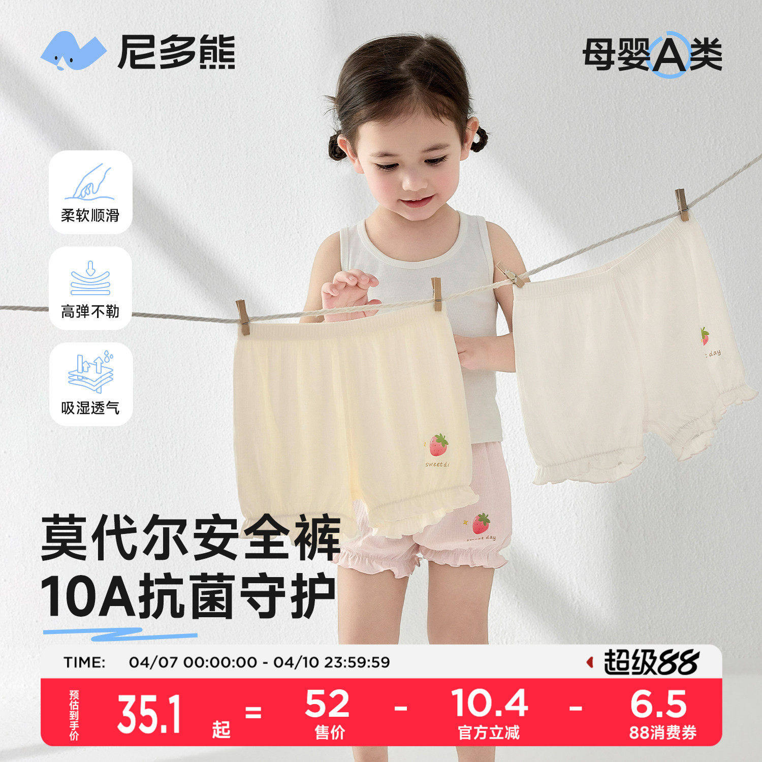 尼多熊2026女童安全裤儿童内裤莫代尔女宝打底裤防走光保险短裤夏