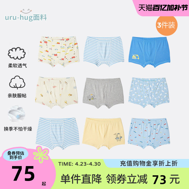 千趣会童装儿童短裤uru-hug面料亲肤保湿男童平角内裤3条装