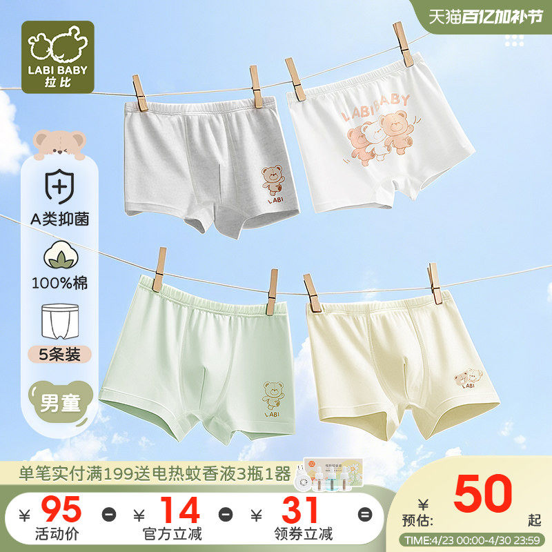 【男童内裤】拉比儿童四角内裤宝宝不夹PP男童平角内裤短裤3条装