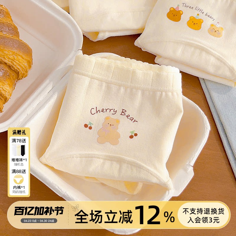 布丁熊~可爱内裤女生纯棉加长裆2026新款卡通学生抗菌女士中腰
