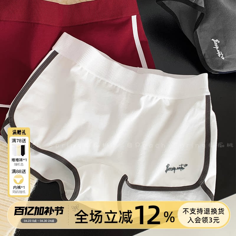共享假期!女生复古美式运动风平角裤四角纯棉中腰内裤高开叉不勒